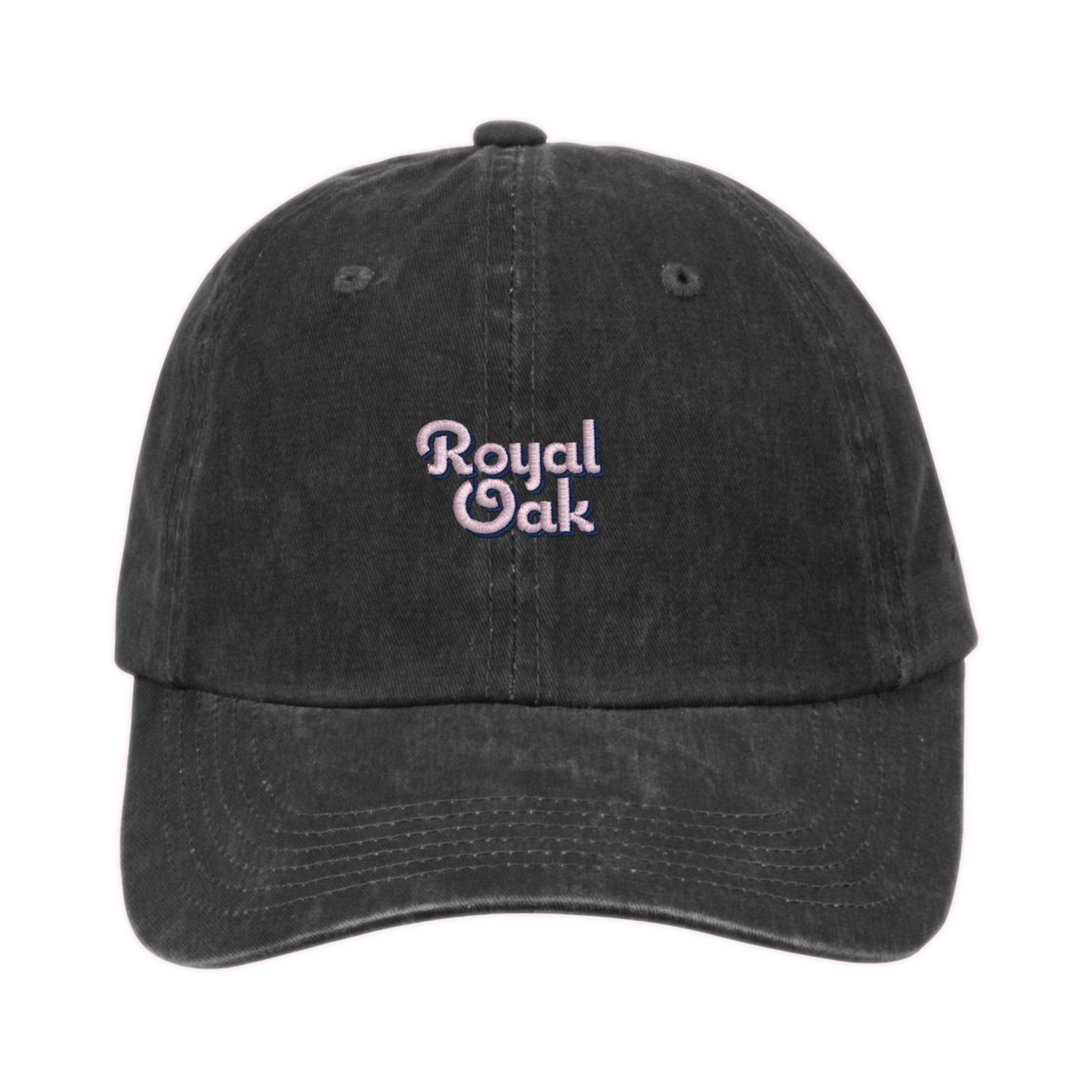 Pink Royal Oak logo on lightly faded black dad hat.
